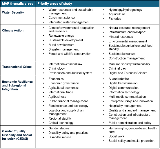 You should ONLY apply for a MAP-funded award if your proposed study or research falls within one of the MAP key thematic areas detailed in the table below.