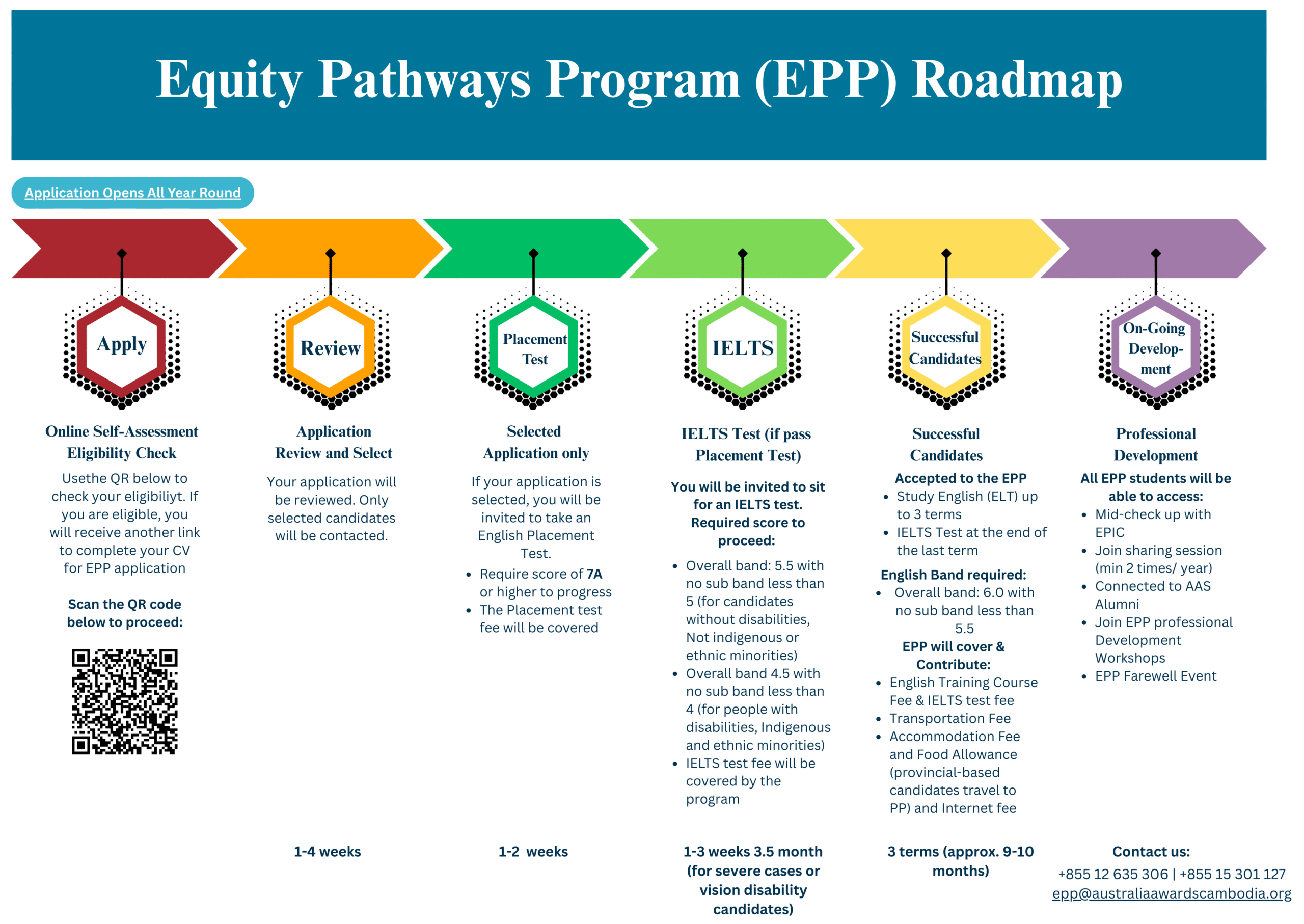 3. If you have any questions, please email us via epp@australiaawardscambodia.org, with email subject: Inquiry About Equity Pathways Program (EPP)